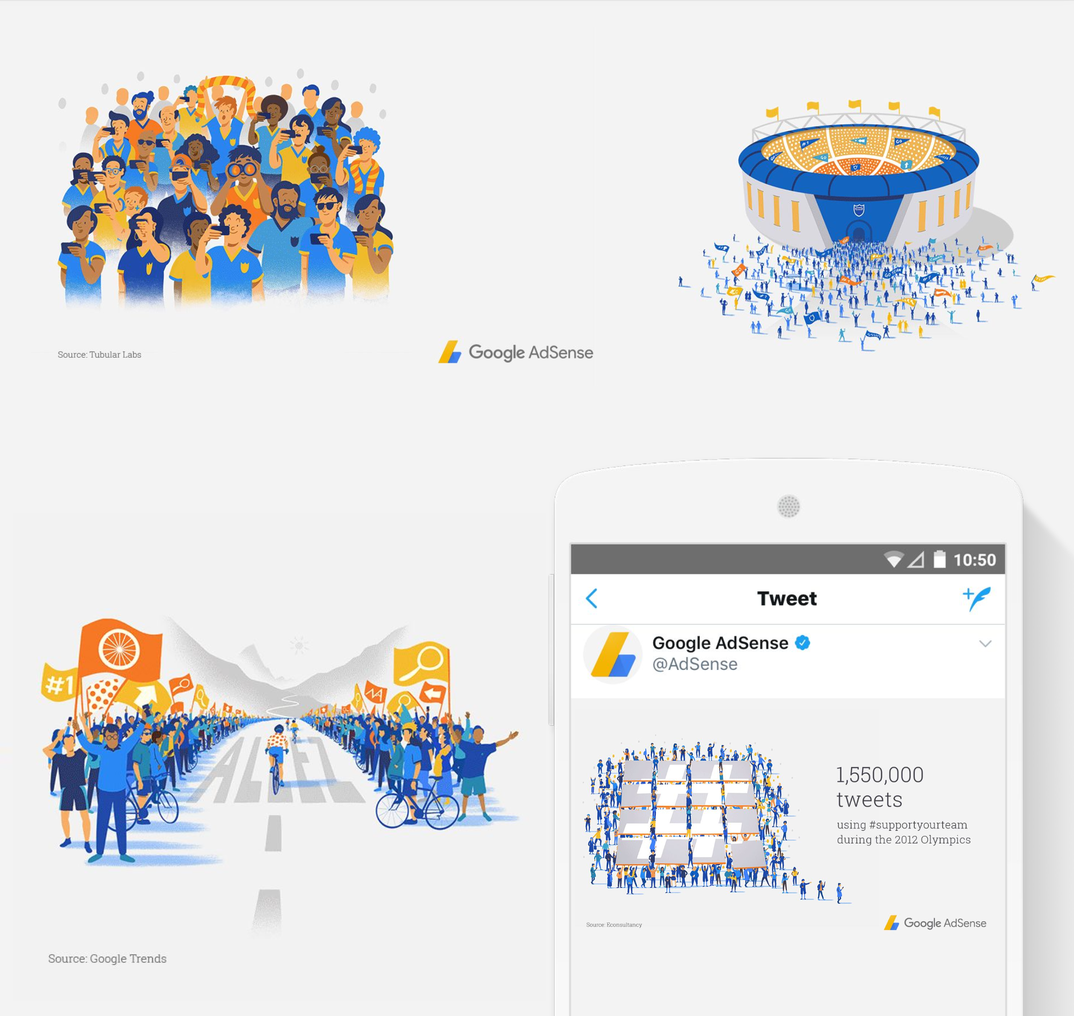 Campaign toolkit for the Google AdSense team to deploy across their social media accounts over a 12 week period. We called it ‘Draw The Crowds’.